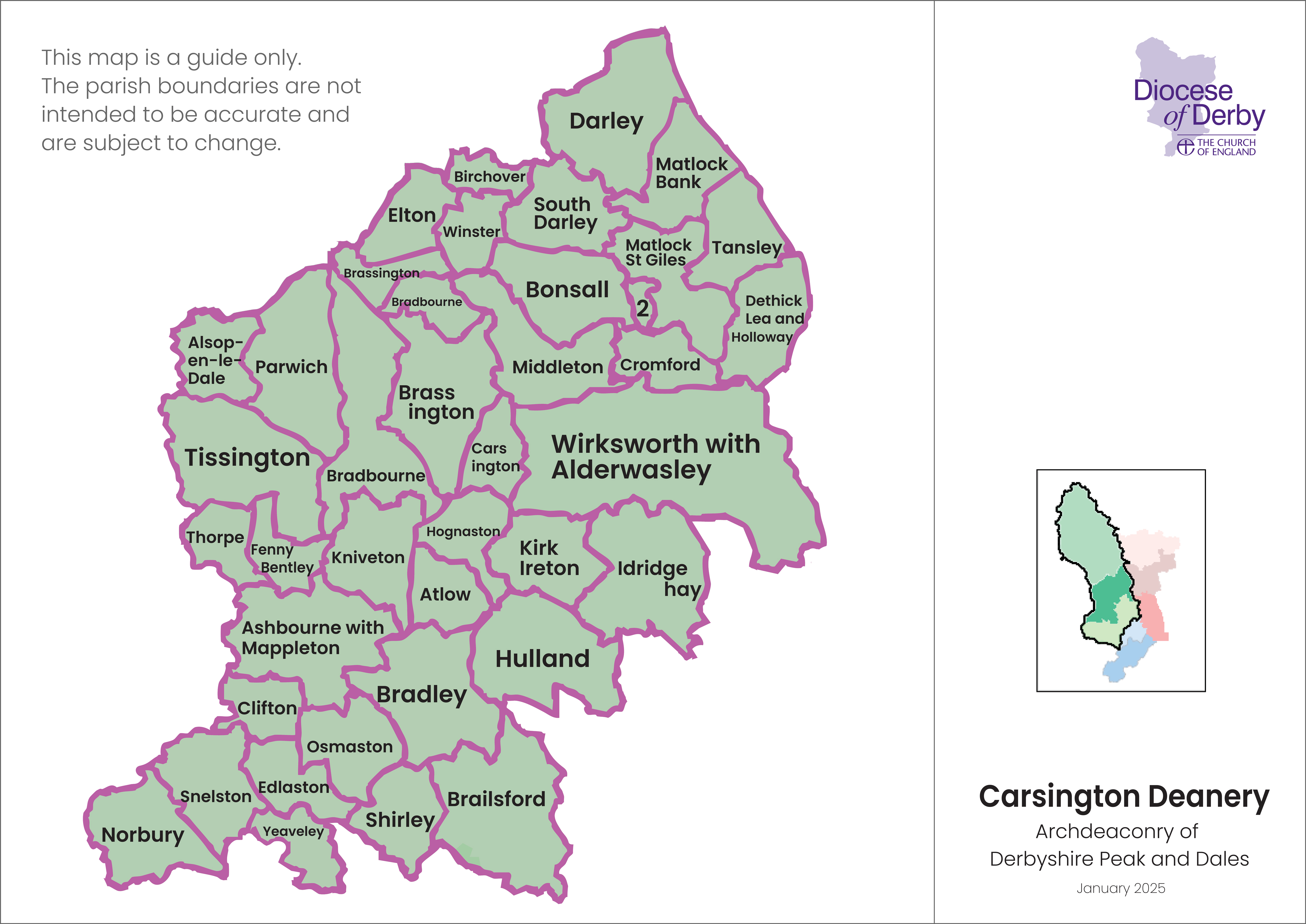 - Wirksworth (Parishes of Bonsall; Bradbourne; Brassington; Carsington; All Saints, Elton; St James, Idridgehay; Kirk Ireton; Middleton; Wirksworth with Alderwasley)