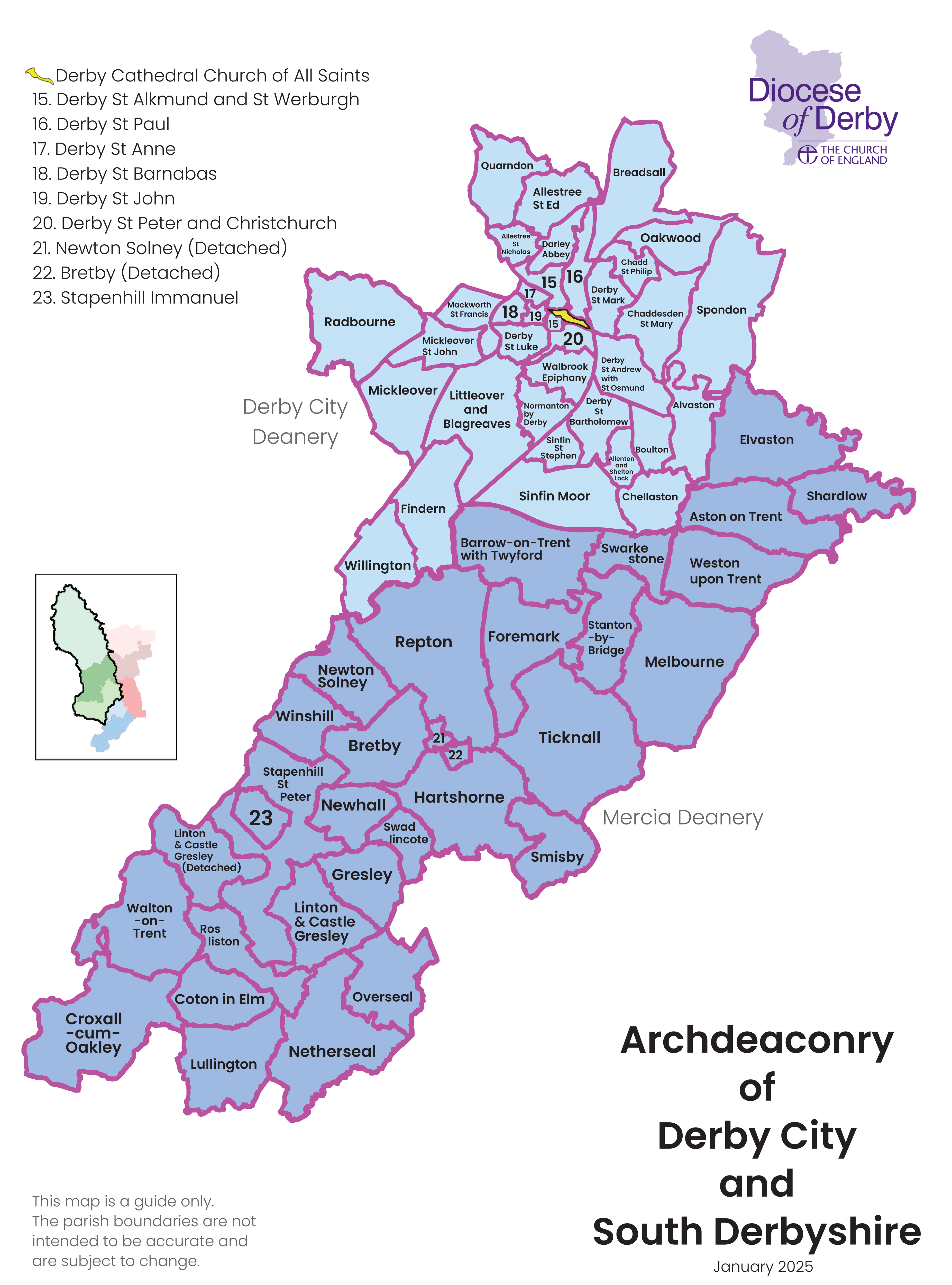 >> Download a printable map of the Archdeaconry of Derby City and South Derbyshire (suitable for A4 and A3) [JPG]