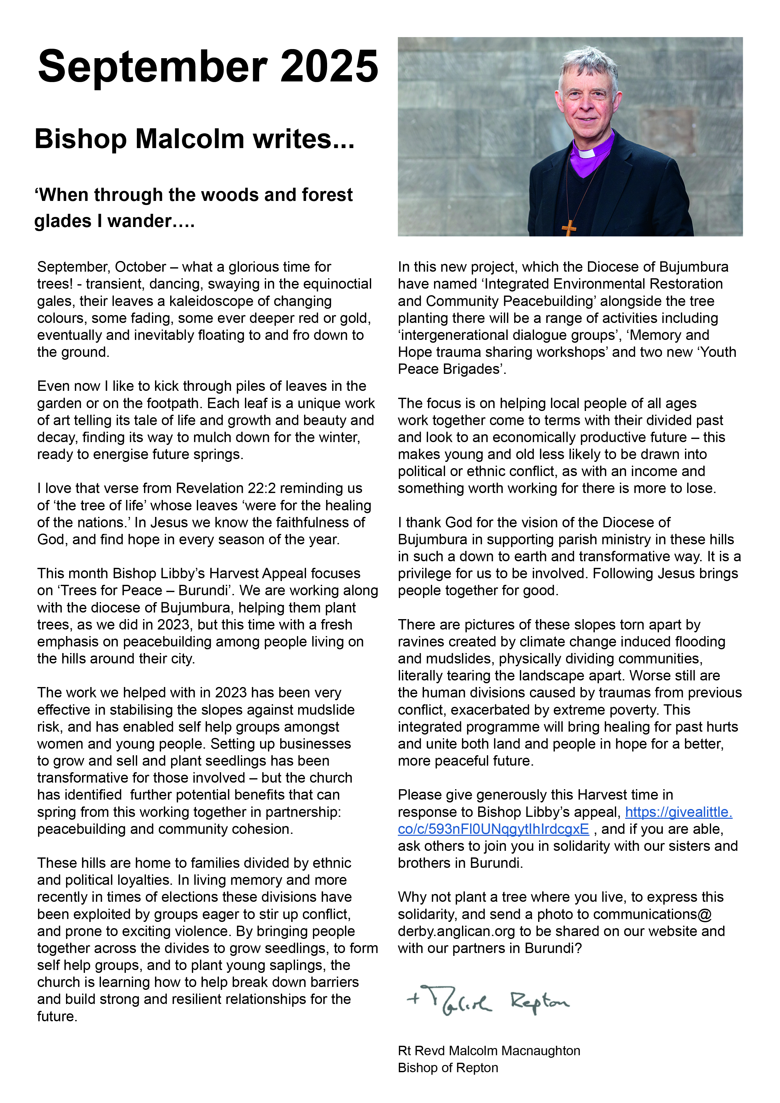 We are the Diocese of Derby network of prayer – praying together, as we prepare to celebrate our centenary in 2027, for transformed lives in growing church and building community the length and breadth of our diocese.